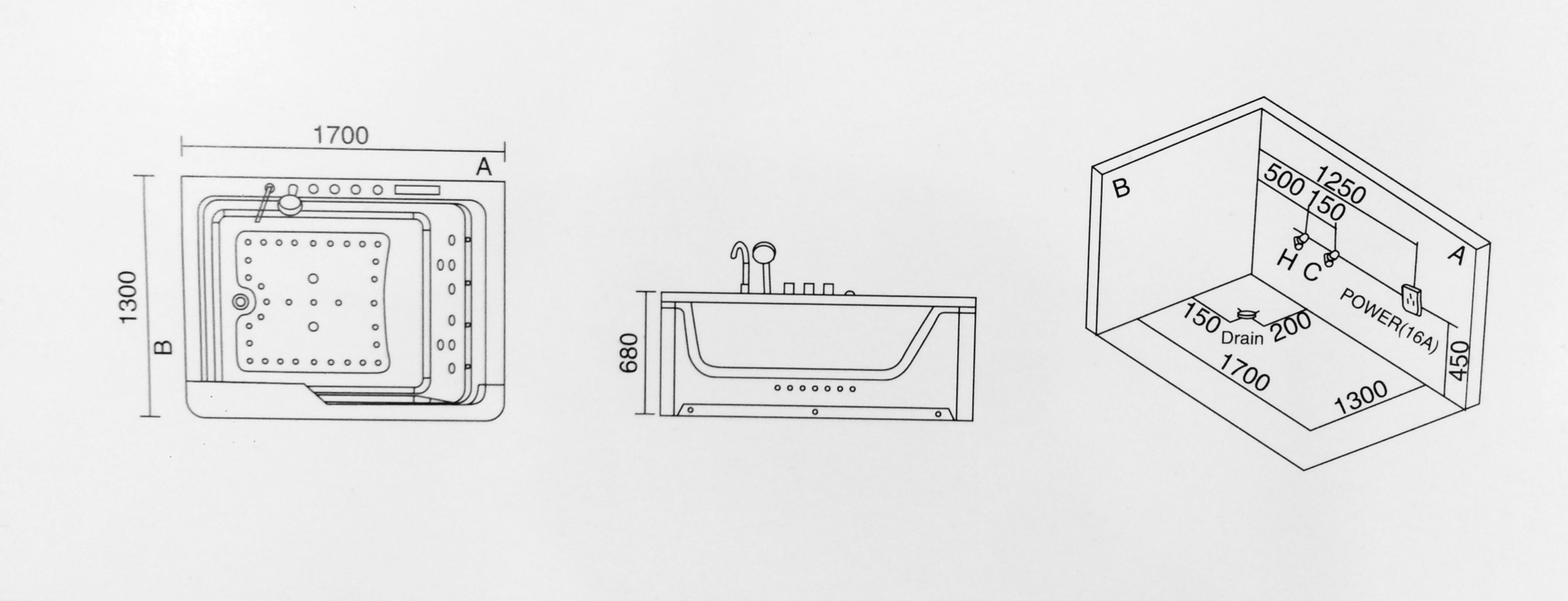 Với cùng một kiểu dáng Bồn tắm nằm massage Daros HT-37 có 2 kích thước: 1700 x 1200 x 680 mm và 1700 x 1300 x 680 mm để khách hàng có thêm nhiều sự lựa chọn hơn hơn. Bồn tắm nằm massage Daros HT-37 có đầy đủ các thiết bị cao cấp phục vụ cho việc tắm massage như: sen vòi, bộ lọc nước, họng massage, họng tạo bọt khí, bộ điều chỉnh tốc độ họng sục, bơm và van vòi nước thải. Toàn bộ những thiết bị như sen vòi hay phần mắt sục massage, máy bơm...