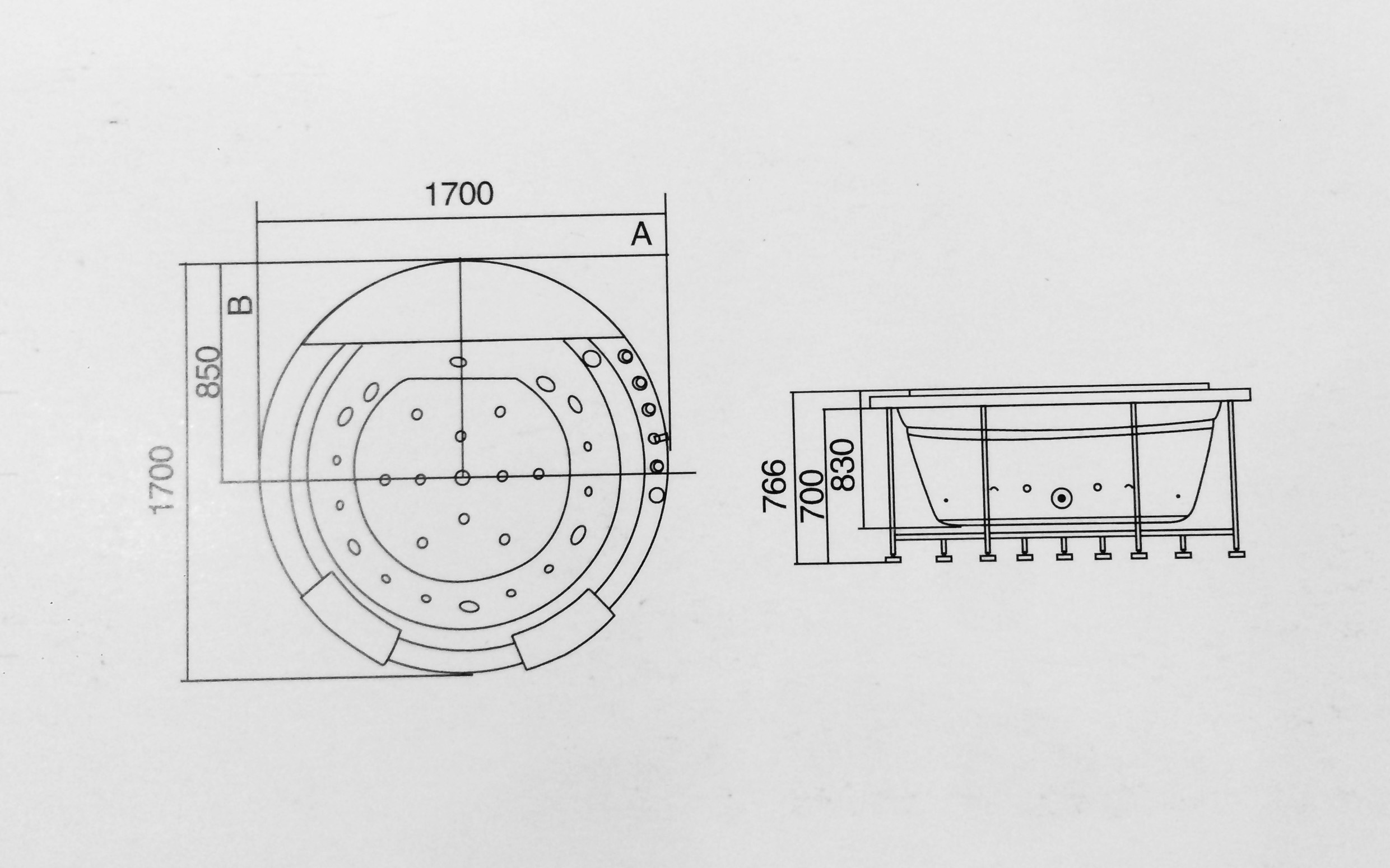 Bản vẽ kĩ thuật Bồn tắm massage Daros HT-76