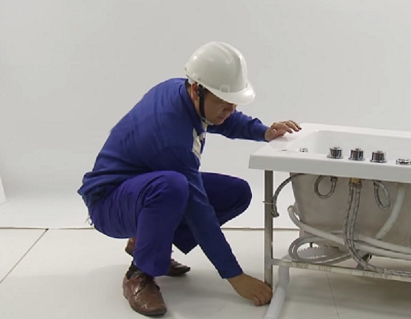 Sau khi đặt bồn và đúng vị trí, ta tiến hành khoan và lắp ốc vít cố định bồn tắm với tường nhà tắm để bồn được cố định, không bị nghiêng, lệch trong quá trình sử dụng. Kết nối ống nước xả với van xả bên trong bồn tắm, kiểm tra khả năng thoát nước cũng như khả năng giữ nước của bồn tắm. Kiểm tra hiện tượng rò rỉ nước bằng cách đóng van xả bên trong bồn tắm và tiến hành xả nước vào trong bồn, theo dõi mực nước xem có thay đổi hay không.
