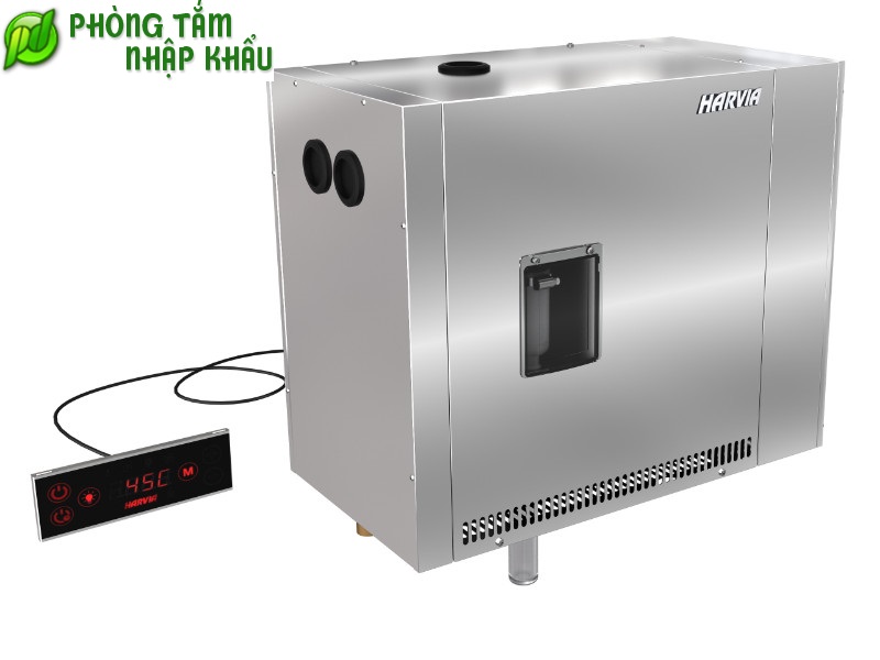 Máy xông hơi ướt Harvia có thiết kế hình hộp, nhỏ gọn với nhiều công suất đáp ứng mọi không gian lắp đặt từ 2.2KW, 4.5KW, 5.7kW, 9KW, 10.8KW, 15KW… Nổi bật, thiết kế với van xả tự động có cốc gom chất cặn nên hạn chế được tình trạng gặp sự cố với nguồn nước. Có đầu bơm nhiên liệu và thiết bị bổ sung hương thơm nên hơi nước toả ra với mùi hương thoang thoảng lan tỏa khắp phòng. Đây là một điểm nhấn mà spa, khu nghỉ dưỡng có thể sử dụng để thu hút thêm khách hàng đến sử dụng các dịch vụ chăm sóc sức khỏe và làm đẹp.